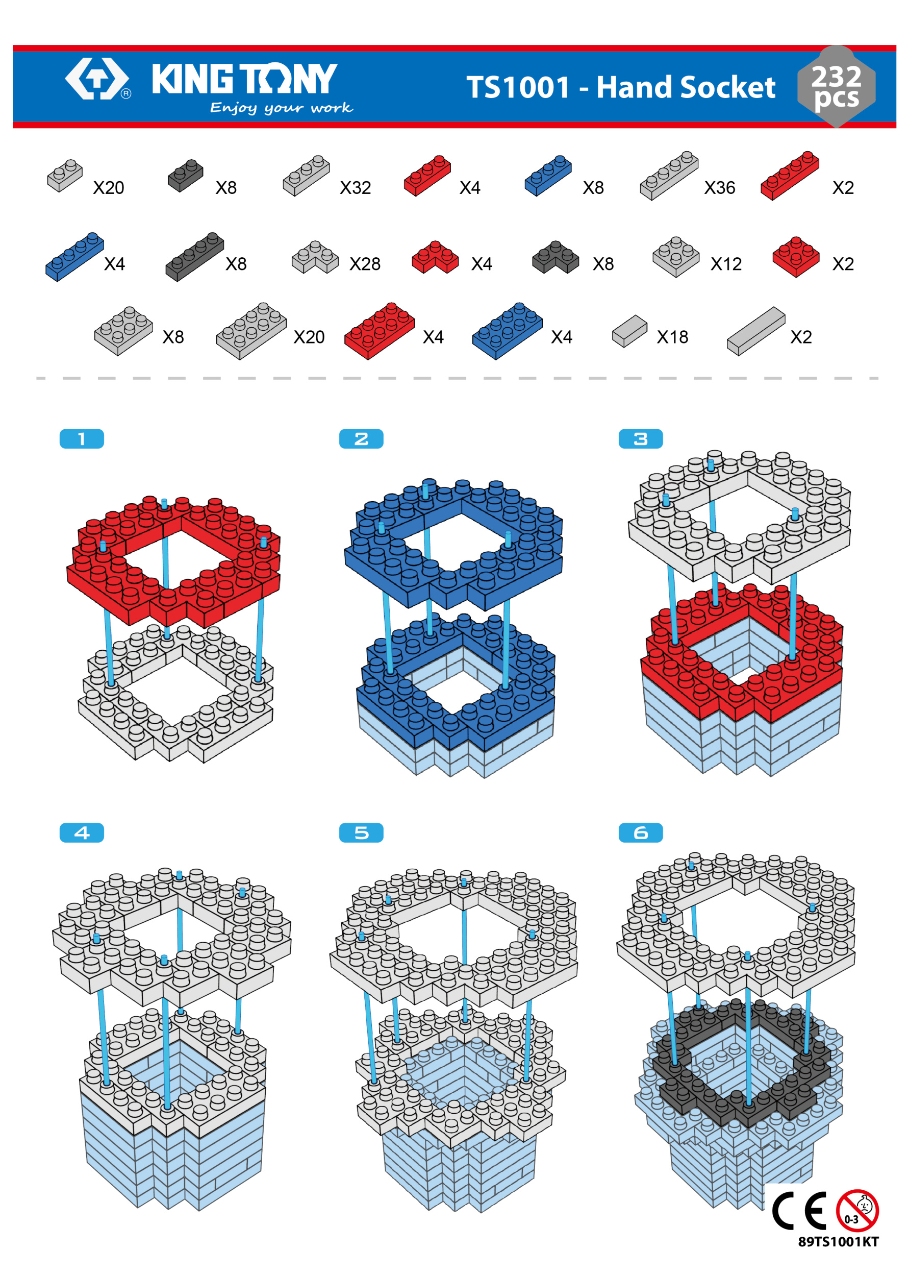 Конструктор состоит из 232 деталей, которые позволяют собрать модель Торцевой головки серии 4335M в фирменном стиле бренда KING TONY. В набор входит инструкция с подробным описанием и схемой сборки.