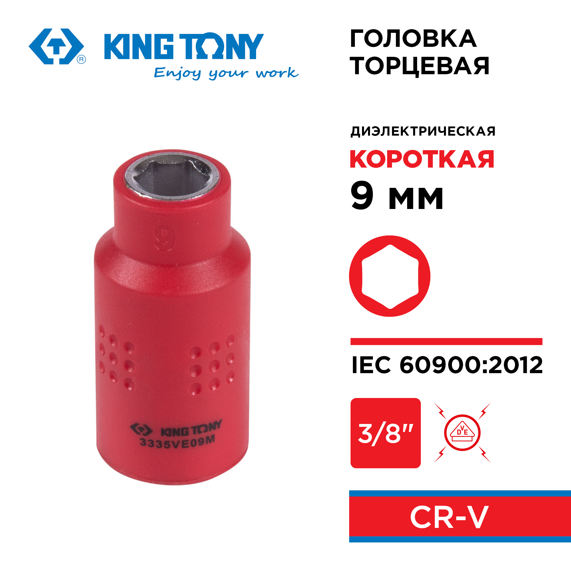 Торцевая головка изготовлена и соответствует требованиям норм безопасности по стандарту VDE, имеет соответствующую маркировку и сертификат качества IEC 60900:2012 для работы под напряжением до 1000В переменного тока и до 1500В постоянного тока.