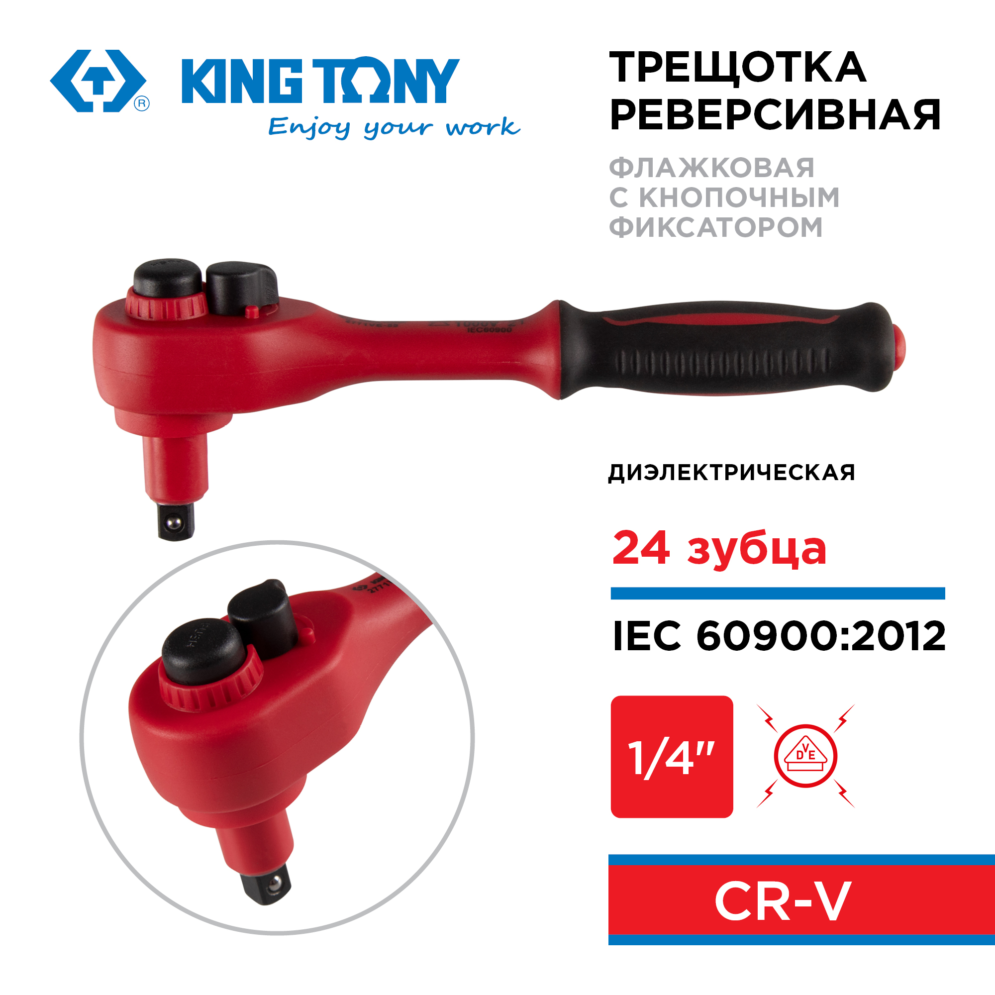 | Материалы | Инструментальная сталь Cr-V, хром (корпус), сталь Cr-Mo (детали храповика), фосфатированное покрытие (посадочный квадрат), PP (изоляция), PP+TPR (рукоять) |